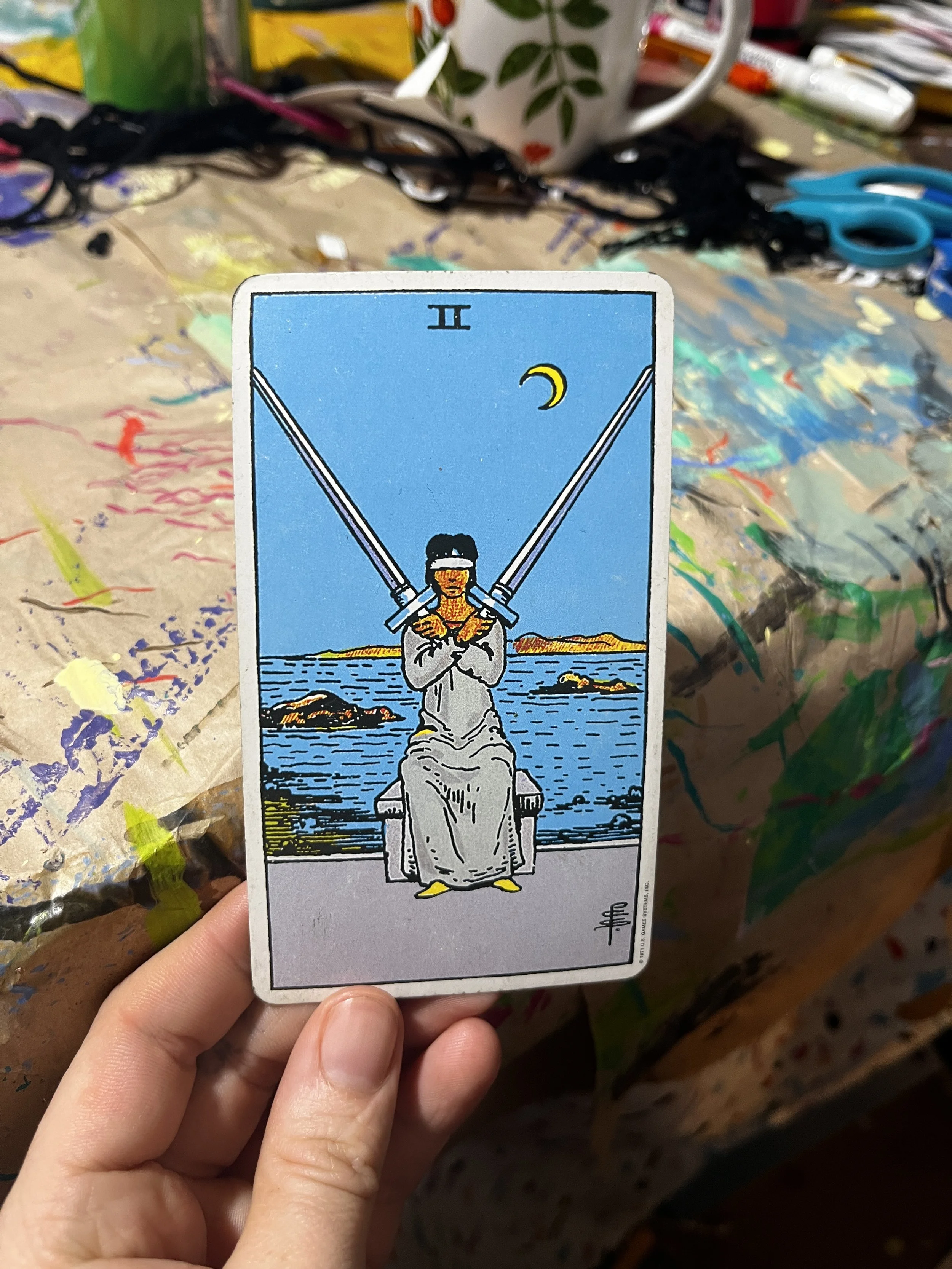 Visited by the 2 of Swords today, in the heart of winter -30F and sunny outside-day off from work (truck incapacitated) I am very much At Home. The Tarot image was one of choosing Isolation.